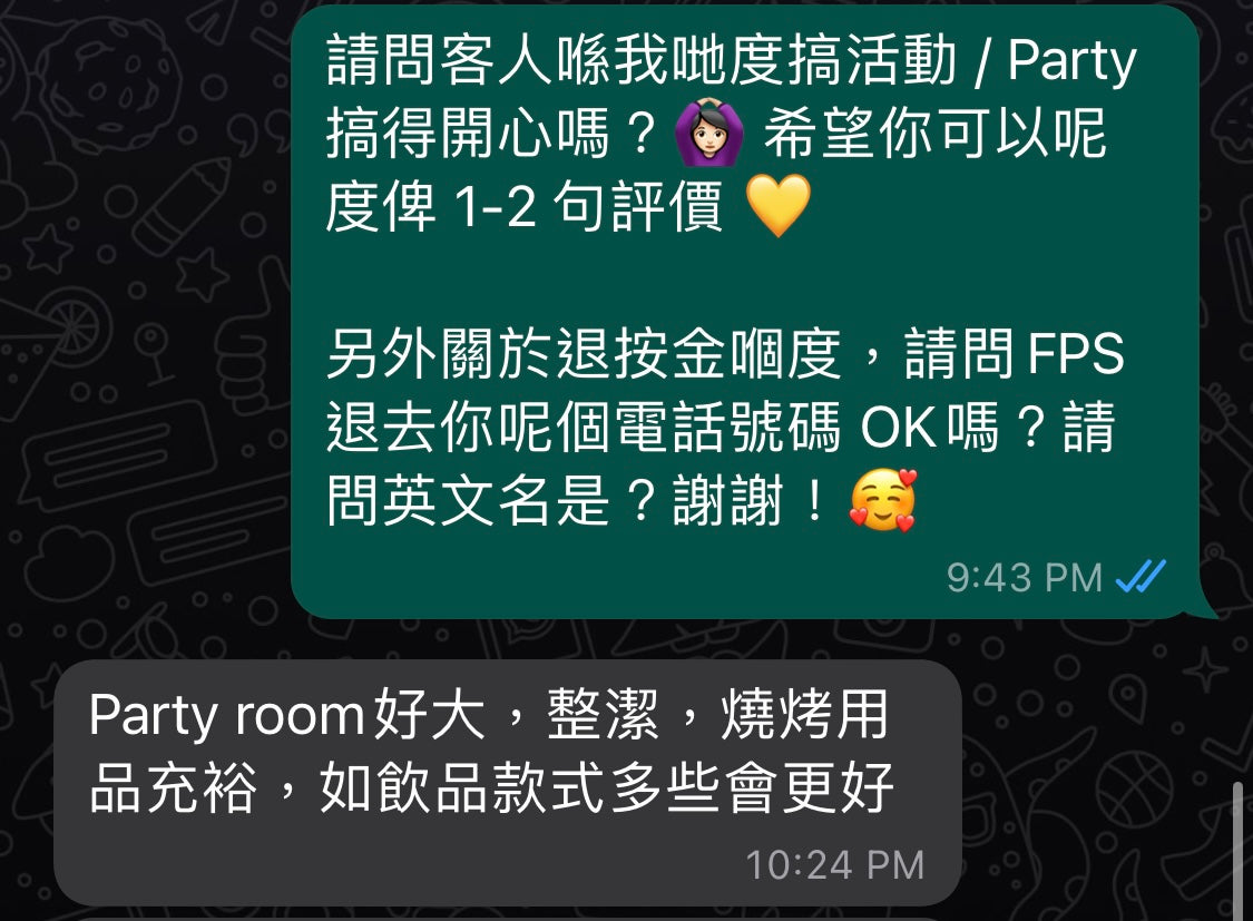 - 提供BBQ食物代訂服務(相關詳情在 WhatsApp我們)